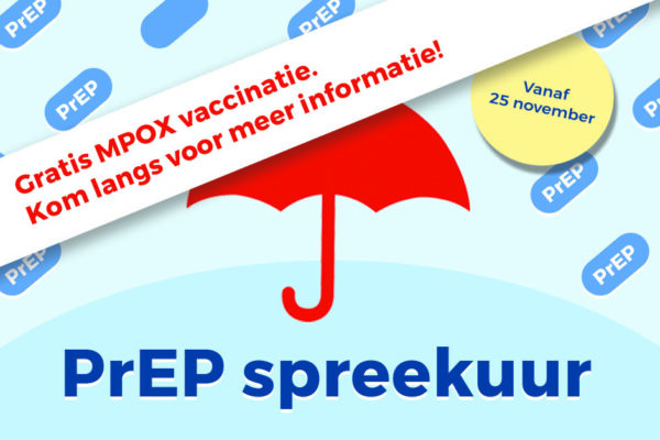 Vanaf dinsdag 25 november bieden we, in samenwerking met het Centrum Seksuele Gezondheid, gratis mpox-vaccinaties aan tijdens het PrEP-inloopspreekuur bij Spot46. Dit spreekuur is speciaal opgezet voor mannelijke sekswerkers en trans sekswerkers. Kom langs voor informatie, advies, en zorg rondom PrEP, seksuele gezondheid én nu ook mpox-vaccinaties. Wat is mpox? Mpox is een ziekte die […] MEER ›